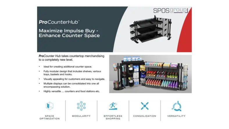 ProCounter Hub takes countertop merchandising to a completely new level. A large variety of pre-designed and tooled components can be mixed and matched to achieve the ideal counter solution, future-proofing and protecting your investment.